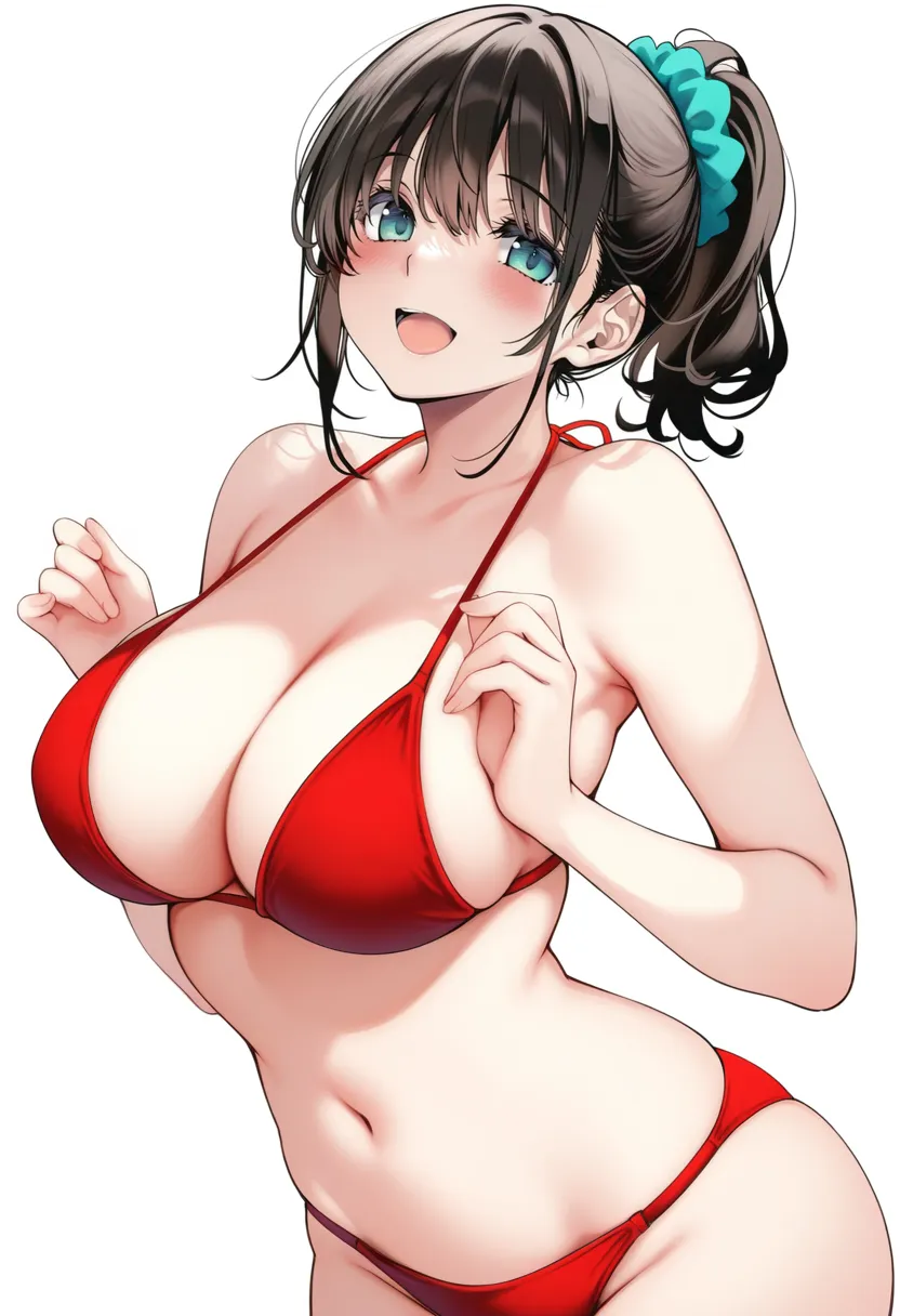 今回はあくまで例として赤い水着という指定だけでイラスト生成したので、水着にも差が出てしまいましたが、その当たりの微調整は可能なのでご安心を。